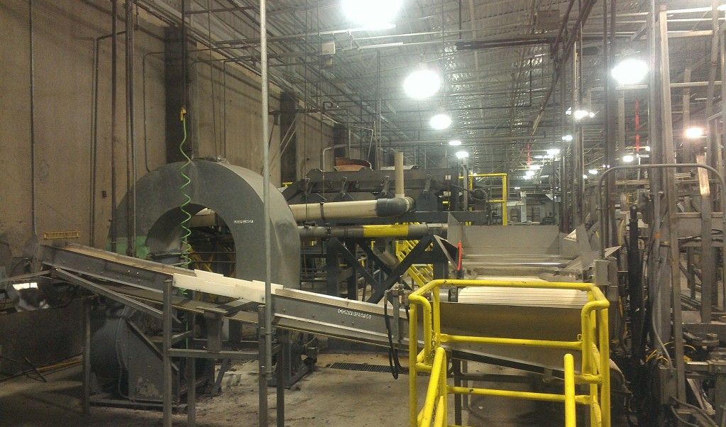 Bin Unloader, Stacker, Dumper, with Bulk transfer belt, Located in Receiving Area, Quantity (1).